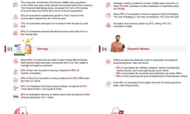 “ग्रेट इंडियन वॉलेट” अध्ययन के अनुसार, वर्तमान स्थिति और भविष्य की धारणा दोनों के संदर्भ में शहरी और अर्ध-शहरी कंज़्यूमर्स के बीच वित्तीय कल्याण सूचकांक में पिछले वर्ष की तुलना में वृद्धि हुई है। 52% कंज़्यूमर्स ने कहा कि पिछले वर्ष की तुलना में चालू वर्ष में उनकी आय में वृद्धि हुई है, जबकि 74% कंज़्यूमर्स को उम्मीद है कि आने वाले वर्ष तक उनकी आय में वृद्धि होगी। लगभग दो-तिहाई दावा करते हैं कि वे आनेवाले वर्ष में अधिक (66%) बचाने और अधिक (66%) इंवेस्ट करने में सक्षम होंगे। कंज़्यूमर्स भावना में यह उछाल अर्थव्यवस्था में वृद्धि, कमाई की क्षमता में वृद्धि और आय वृद्धि की सकारात्मक धारणा से प्रेरित है।