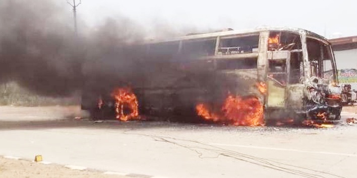 एसी बस में अचानक आग लग गई,यात्रियों ने बस से कूदकर अपनी जान बचाई