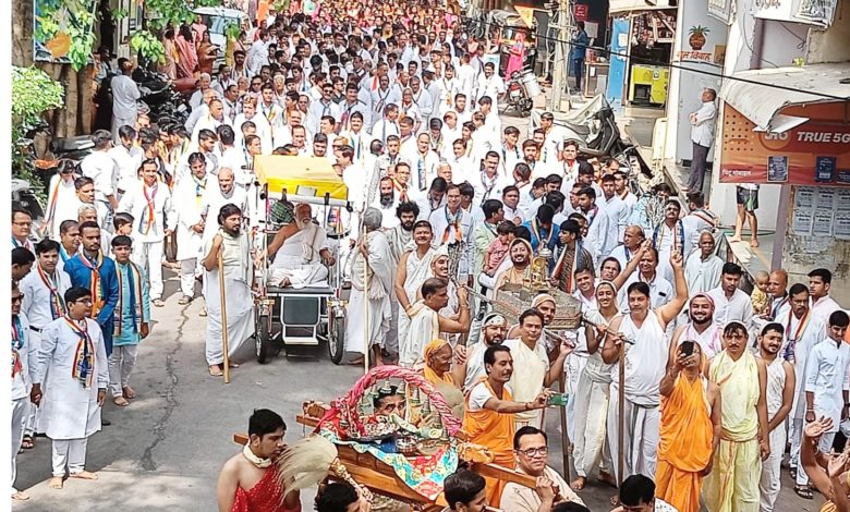 धार । जैन धर्म के 24वें तीर्थंकर भगवान महावीर स्वामी के 2623 वा जन्म कल्याणक महोत्सव पर विशाल रथ यात्रा समग्र जैन समाज के नेतृत्व में 21 अप्रैल को गुरुदेव जिनरत्न सुरीश्वर जी महाराज संघ के पावन सानिध्य में निकली रथ यात्रा राजेंद्र भवन रावला से प्रारंभ होकर शांतिनाथ दिगंबर जैन मंदिर पार्श्वनाथ मंदिर होते हुए पो चौपाटी नालछा दरवाजा सेनापति मार्ग होते हुए शांतिनाथ मंदिर पहुंची। रथयात्रा का नेतृत्व समाज अध्यक्ष प्रकाश बाफना वर्धमान सुराना श्रेणीक गंगवाल अशोक जैन बाफना जितेंद्र जैन विजय मेहता कर रहे थे। मीडिया प्रभारी पारस जैन गंगवाल ने बताया कि मंदिर जी में भगवान श्री महावीर का जन्मभिषेक रिद्धि सिद्धि मंत्र के साथ भगवान को पाडु्क शीला पर विराजमान स्वर्ण कलशो के साथ किया शांति धारा व जन्मभिषेक का लाभ सुशील लुहाडिया नरेश गंगवाल प्रदीप छाबड़ा विमल गोधा संजय रावका राजेंद्र बांझल को प्राप्त हुआ धार्मिक क्रियाएं विद्वान विमल जैन शास्त्री के निर्देशन में संपन्न हुई। समाज की महिला भगवान महावीर का संदेश जियो और जीने दो के नारों के साथ चल रही थी। आभार समाज सचिव संजय जैन बगड़ी ने माना साथ ही शहर के समीप आहु पार्श्वनाथ अतिशय क्षेत्र पर महावीर जन्मोत्सव धूमधाम के साथ मनाया जानकारी मीडिया प्रभारी पारस जैन गंगवाल ने दी।