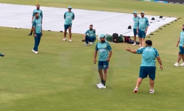 इस वीडियो में पाकिस्तान के 7 से 8 खिलाड़ी रग्बी गेंद के साथ अभ्यास करते दिखे हैं। इस दौरान सभी खिलाड़ी सतर्क खड़े होते हैं। वहीं आजम खान थोड़े लापरवाह नजर आते हैं। तभी बाबर मजाकिया अंदाज में कहते हैं कि कहते हैं, कि ये गैंडा सीधा नहीं होगा।